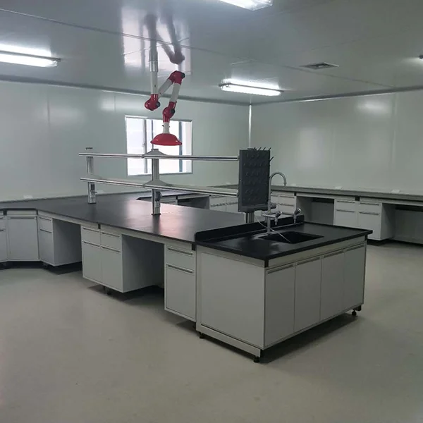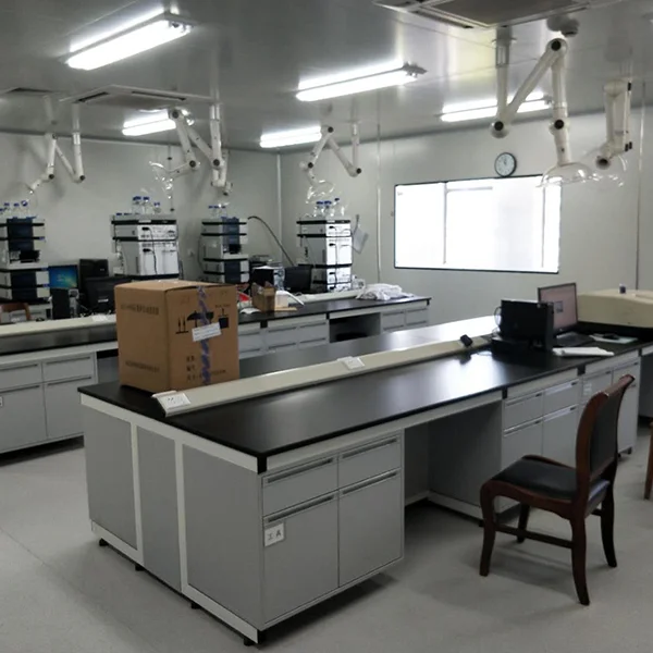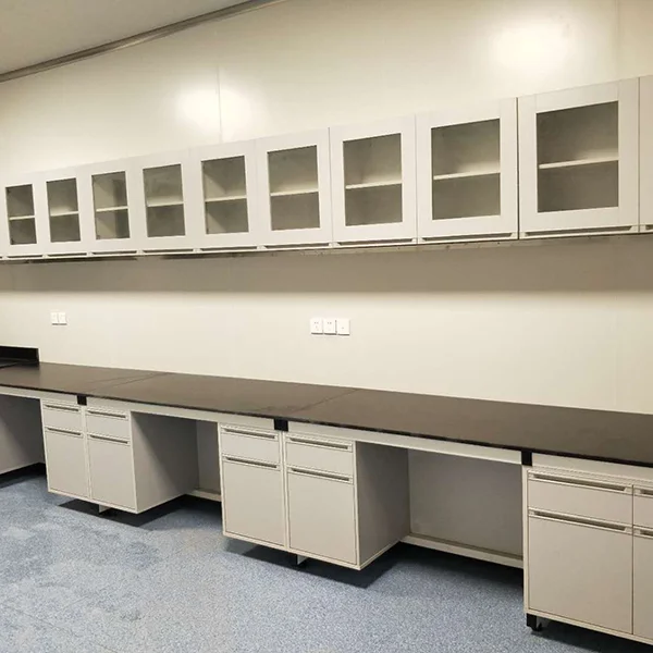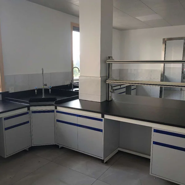 主框架選用國(guó)標(biāo)鍍鋅方鋼,柜體選用E1級(jí)三聚氰胺板組成的實(shí)驗(yàn)臺(tái)稱為鋼木實(shí)驗(yàn)臺(tái)。鋼木實(shí)驗(yàn)臺(tái)包含兩種結(jié)構(gòu):一種是C-型側(cè)片,一種是H型側(cè)片。C型結(jié)構(gòu)簡(jiǎn)單,靈活多變,可以隨意組合;H型端莊大方,承重性能好。C型可選用懸柜和推柜式結(jié)構(gòu),便于安裝拆卸,有利于實(shí)驗(yàn)室清潔工作;H型的鋼架構(gòu),使得實(shí)驗(yàn)臺(tái)承重能達(dá)到500KG以上,滿足大型精密儀器的使用要求。